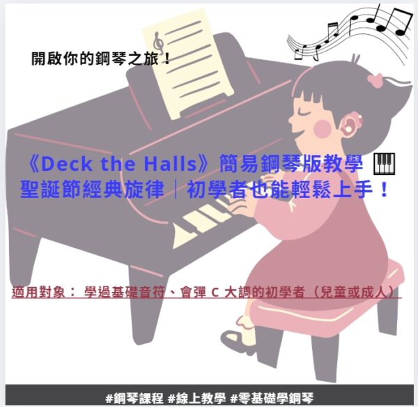 🎵「Nita老師的全齡鋼琴線上課程 【熱門鋼琴旋律學習影片】|《Deck the Halls》